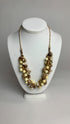 Hand braided strands of freshwater pearls, polished seashell, yellow quartzite and ceramic bead come together to make a light and lovely display of treasures at the neckline.